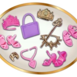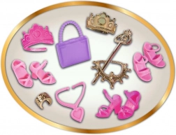 V sete nájdete rôzne večerné róby, trblietavé prvky a tematické doplnky ako tiary, topánky, kabelky a šperky, ktoré možno navzájom kombinovať. Táto rozmanitosť zaručuje hodiny tvorivej a samostatnej hry.