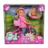 Objavte svet zábavných dobrodružstiev s bábikou Evičkou, ktorá vyráža na projazd so svojím psíkom. Vďaka praktickej helme a pestrofarebnému bicyklu je pripravená na bezpečné a veselé hranie. Kompaktná výška 12 cm padne detským rúčkam a nabáda k tvorivej hre doma aj na cestách.