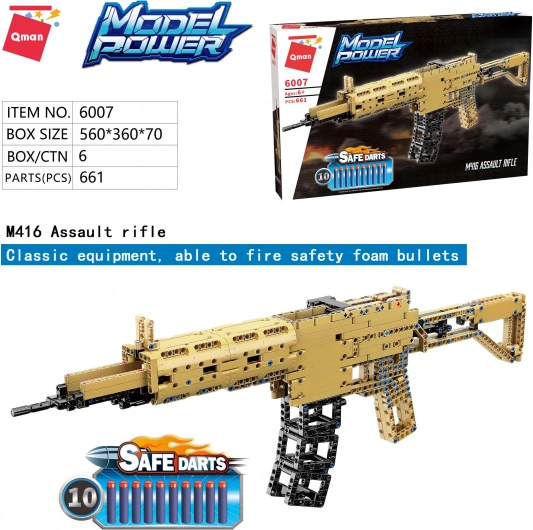 Objavte svet zábavy a kreativity so stavebnicou útočnej pušky Qman M416. Táto variabilná stavebnica z pestrofarebných plastových kociek vám umožní: