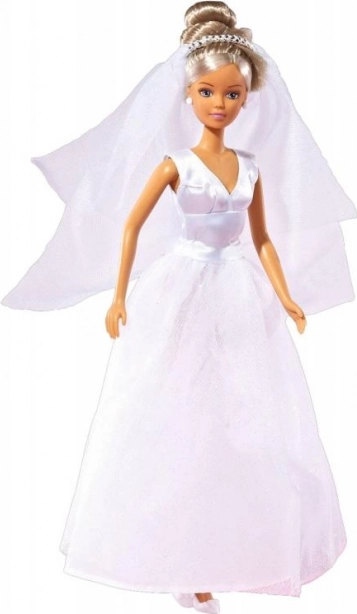 Bábika Steffi nevesta prichádza v nádherných bielych svadobných šatách so závojom, ktoré vynikajú jemnými detailmi a elegantným vzhľadom. Je skvelou voľbou pre deti, ktoré milujú módne bábiky a chcú si prehrávať čarovné svadobné okamihy.