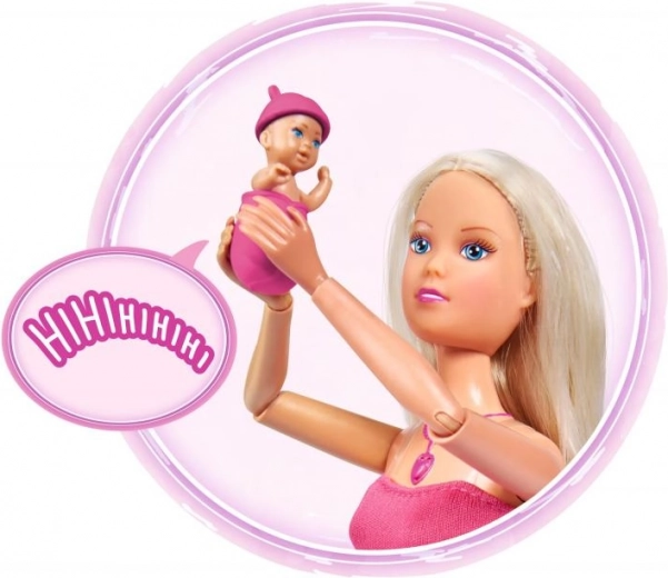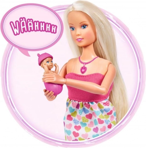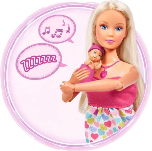 Bábika Steffi Love prináša deťom svet nežných príbehov o očakávaní a prvej starostlivosti o bábätko. Intuitívne ovládanie cez srdiečkový náhrdelník prehráva rôzne zvuky – od tlkotu srdiečka cez plač po upokojujúcu uspávanku. Bruško možno uzavrieť pomocou integrovanej klapky, aby hra plynulo pokračovala od očakávania po starostlivosť o novorodenca.
