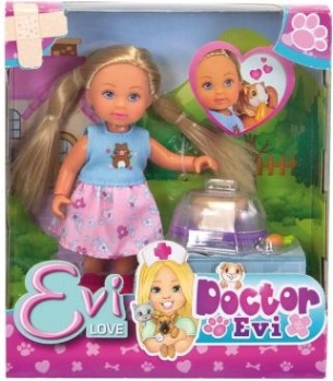 Panenka Evička veterinárka je ideálnym doplnkom do zbierky pre všetkých malých milovníkov zvierat. Táto sada obsahuje 12 cm vysokú bábiku Evičku, ktorá je pripravená postarať sa o svoje morčiatko s pomocou rôznych veterinárnych nástrojov.