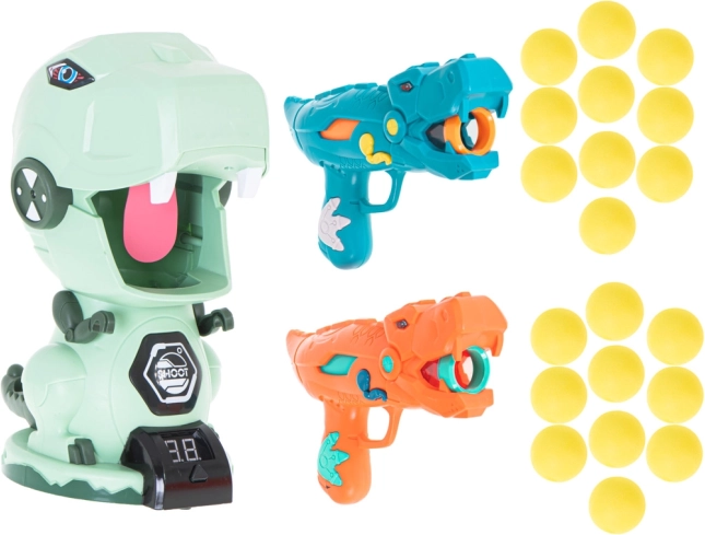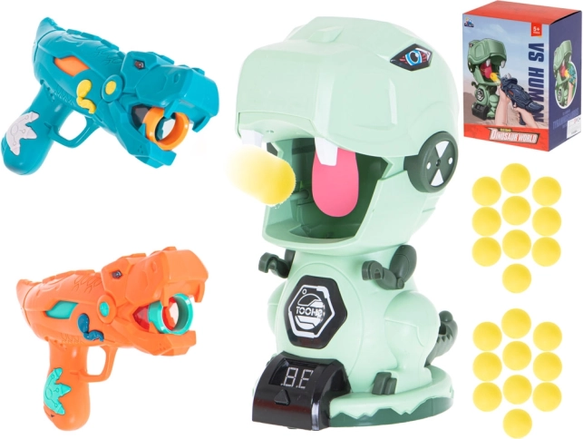 Dva štýlové pištole v tvare dinosaurov umožňujú strieľať mäkké penové guličky bezpečne a efektívne. Ideálne pre hry v dvojiciach a súťaže.