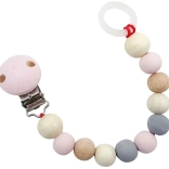 Užite si bezpečné uchytenie cumlíka s touto ručne vyrábanou drevenou retiazkou, ktorá je ideálna pre malé deti. Retiazka je vybavená silikónovým krúžkom, umožňujúcim uchytiť takmer každý cumlík. Všetky materiály sú starostlivo vybrané tak, aby boli bezpečné pre deti, čo znamená, že sú odolné voči vlhkosti a neobsahujú škodlivé látky.