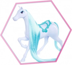 Biely kôň s dlhou tyrkysovou hrivou a elegantným postojom je srdcom zimnej fantázie tohto setu.