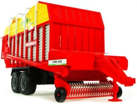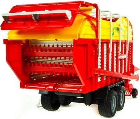 O autentickú hru sa starajú funkčné prvky: ručná kľučka ovláda dávkovacie valce, rotačný spodný zberač aj vykladač. Voz možno samostatne postaviť na opornú nohu a pripojiť za akýkoľvek traktor BRUDER radov 20xx, 21xx a 30xx. Kvalitné plastové prevedenie zaručuje dlhú životnosť aj pri každodennom hraní.