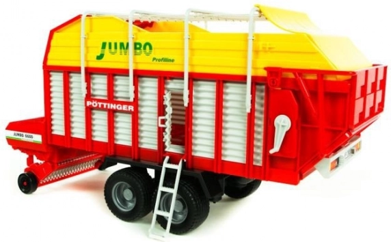 Prineste si na dvor skutočnú atmosféru žatvy. Zberací voz BRUDER Pöttinger Jumbo 6600 vyniká pevnou konštrukciou, typickým červeno‑žltým dizajnom a precíznymi detailmi, ktoré verne napodobňujú originálnu poľnohospodársku techniku. Deti ľahko otvoria bočnice aj zadné dvere, sklopia rebrík a sňatie strešných madiel im umožní nahliadnuť do útrob vozidla.