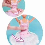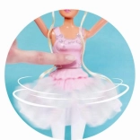 Po stlačení ružového tlačidla na brušku sa suknička roztočí a vytvorí efekt skutočnej baletnej piruety.