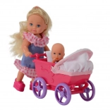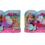 Evi s bábätkom v hlbokom kočíku ponúka zábavu pre malé opatrovateľky. Súčasťou balenia sú praktické doplnky.