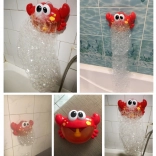 Tento roztomilý krab premení kúpeľ na zábavnú šou plnú bubliniek. Do vyberateľnej nádržky jednoducho nalejete zmes vody a malého množstva peny do kúpeľa, stlačíte tlačidlo ON a krab začne vytvárať bohatú penu sprevádzanú príjemnou melódiou. Ideálne pre deti, ktoré milujú vodu, aj pre malých odporcov kúpania – hravá forma ich spoľahlivo zabaví.