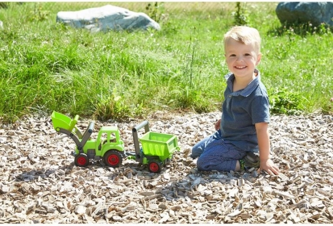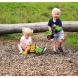 Traktor LENA ECO prináša zábavu aj zodpovednosť k prírode. Vďaka robustnému spracovaniu z recyklovaných materiálov a prímese dreva je odolný a bezpečný pre malých vodičov. Predný nakladač je plne funkčný a umožňuje naberať a presýpať materiál, čo podporuje jemnú motoriku a kreatívnu hru.