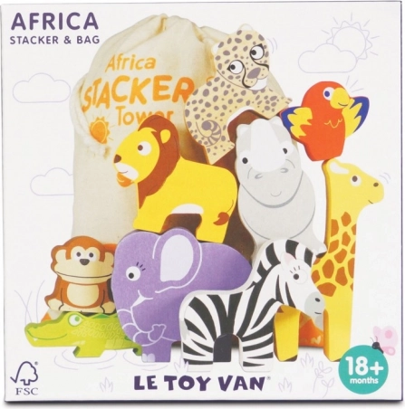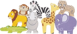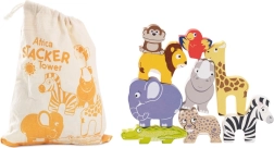 Táto hravá sada prináša do detskej izby kúsok divokej prírody. Deti môžu stavať čo najvyššiu vežu zo zvieratiek – žirafy, leva, slona, zebry, opice, nosorožca, geparda, krokodíla a papagája – a trénovať pritom rovnováhu, trpezlivosť a predstavivosť. Hra formou balansovania rozvíja logické myslenie a podporuje vnímanie tvarov aj farieb.