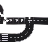 Šírka každého prvku je 8,5 cm, čo zaručuje, že sa na ne zmestia všetky drobné autíčka z detskej zbierky. Cesta je tiež ideálna na ochranu podlahy alebo stola pred poškrabaním, pretože 3 mm hrubá pena tento problém efektívne rieši. Spodná strana je pokrytá protišmykovou vrstvou, ktorá zabraňuje posúvaniu dielikov pre ľahké skladanie a príjemnú zábavu.