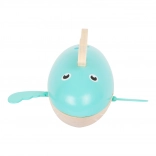 Táto drevená hračka v tvare veľryby prináša mnoho radosti a zábavy pre deti pri hre vo vode. Je ideálna pre použitie vo vani, na bazéne alebo pri mori, kde sa deti môžu naučiť plávať a užiť si hodiny zábavy. Vďaka natiahovaciemu mechanizmu, ktorý umožňuje otáčanie bočných plutiev, sa veľryba môže pohybovať samostatne po vode.