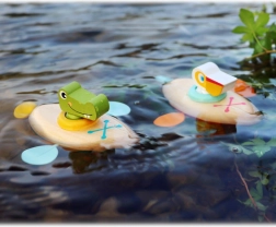 Drevená vodná hračka je šetrnejšou alternatívou k bežným gumovým hračkám. Vďaka príjemným materiálom a oblým tvarom je bezpečná a pohodlne sa drží aj v malých rúčkach.