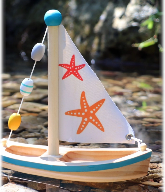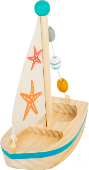 Táto kvalitná vodná hračka Small Foot prináša deťom radosť z voľnej hry vo vode aj mimo nej. Drevený trup s hladkým povrchom a látková plachta s motívom hviezdic zabezpečujú bezpečnú manipuláciu aj atraktívny vzhľad. Plávajúca konštrukcia je ideálna do vane, k bazénu či na letné vodné hry v prírode.