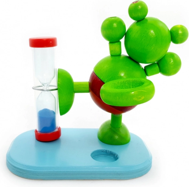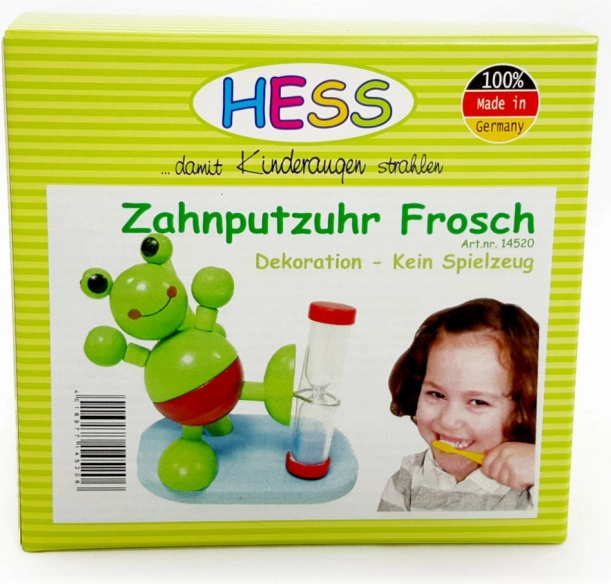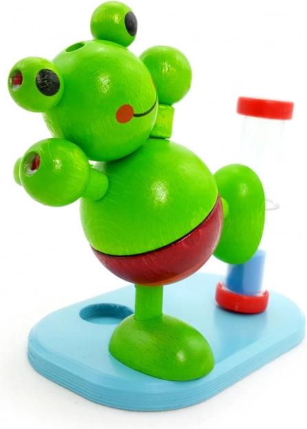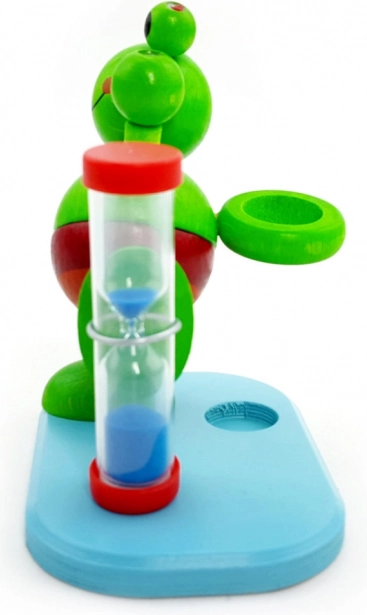 Spríjemnite deťom každodennú hygienu s týmito hravými drevenými presýpacími hodinami v tvare žaby. Ideálne na meranie 2 minút čistenia zubov, s praktickým držiakom na zubnú kefku za postavičkou. Kvalitné prevedenie z prírodného neošetreného dreva a atraktívny dizajn motivuje k pravidelnému čisteniu.