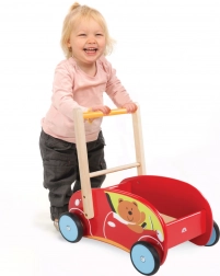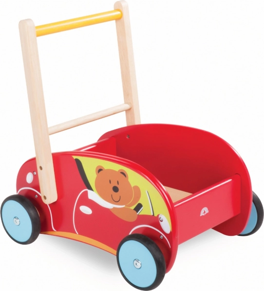 Chcete, aby vaše dieťatko posilnilo svoju mobilitu a zábavnou formou sa naučilo chodiť? Drevené chodítko v tvare auta je ideálnym pomocníkom. Je vybavené gumovými kolesami pre tichý pohyb a systémom pre reguláciu rýchlosti, ktorý chráni dieťa pred pádom. Deti tu nájdu aj úložný priestor pre svoje obľúbené hračky.