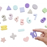 Farebné číslice a geometrické tvary deti vkladajú do zodpovedajúcich výrezov na doske. Pri párovaní trénujú jemnú motoriku, zrakové rozlišovanie a logické myslenie.