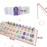 Drevené rybičky a magnetická udica premenia učenie na zábavu. Deti si rozvíjajú koordináciu, trpezlivosť aj koncentráciu a môžu rybičky triediť podľa farieb alebo počítať úlovky.