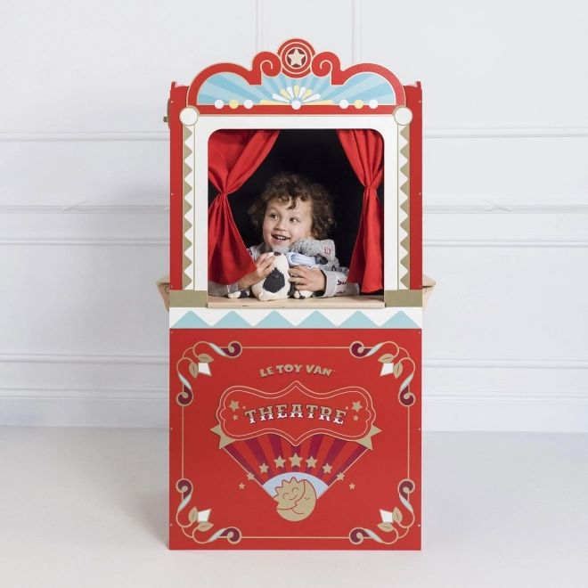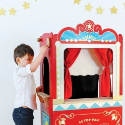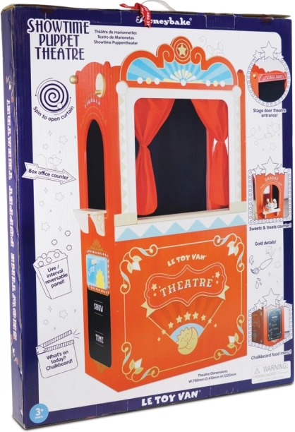 Nechajte deti vstúpiť do sveta fantázie s Le Toy Van Showtime Divadlom. Vyrobené z trvácneho dreva, toto divadlo má retro dizajn, ktorý uchváti každé dieťa. Obsahuje červenú oponu, javisko, bufet a pokladnicu pre ešte viac zábavy.