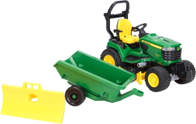 Rozšírte svoj herný svet o detailný záhradný traktor JOHN DEERE X949 od značky BRUDER. Vďaka funkčnej prednej radlici, žaciemu ústrojenstvu a sklopnému vozíku deti ľahko napodobnia skutočné práce v záhrade – od odhŕňania lístia po „kosenie“ trávy a odvoz materiálu.