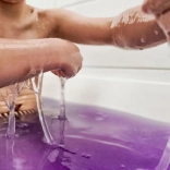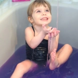 Glibbi premení kúpeľ na fialový trblietavý sliz, čo deťom prinesie úplne nový pocit z bežného kúpanie.