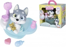 Psík Husky Pamper Petz vo vani - dokonalý spoločník pre zábavné kúpanie! Roztomilé bábätko psíka s funkciou pitia a čúrania, ktoré deti nadchne svojou interaktivitou a hravou funkcionalitou.