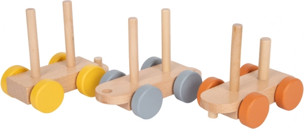 Skladacia konštrukcia vláčika umožňuje deťom rozvíjať jemnú motoriku a koordináciu pohybov, keď sa učia navliekať a skladať jednotlivé bloky.