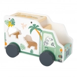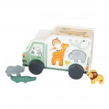 Safari auto poskytuje priestor pre rozvoj fantázie a jemnej motoriky výberom a umiestňovaním drevených zvieratiek.