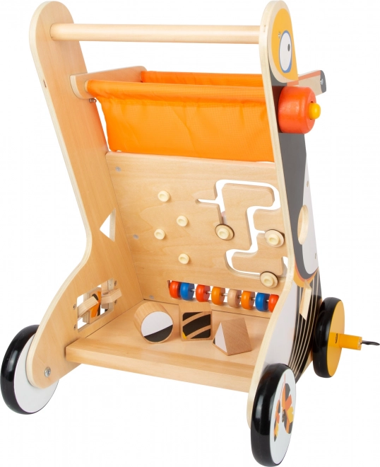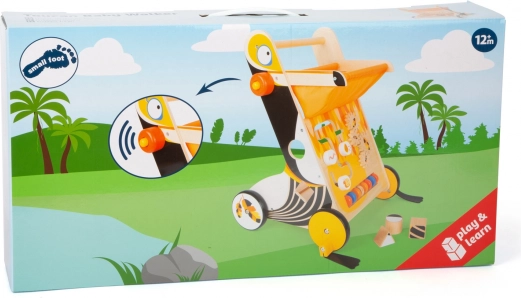 Drevené chodítko Tukan je nepostrádateľným pomocníkom pre prvé kroky vašich detí. Jeho pevná konštrukcia s trojuholníkovým tvarom zabezpečuje maximálnu stabilitu a pogumované kolieska umožňujú tichý a bezpečný pohyb po podlahách. Deťom ponúka nielen zábavu z pohybu, ale taktiež množstvo herných možností.