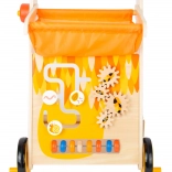 Chodítko obsahuje rôzne herné prvky ako vkladačky, labyrinty a ozubené kolieska, ktoré podporujú rozvoj jemnej motoriky.