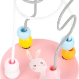 Roztomilý motorický labyrint s motívom zajačika v pastelových farbách rozvíja jemnú motoriku, koordináciu ruka–oko a logické myslenie. Kompaktná ružová základňa s dvoma dráhami a farebnými korálikmi je ideálna na doma aj na cesty a ponúkne deťom hodiny zmysluplnej zábavy.
