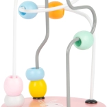 Tento kvalitný korálikový labyrint z dreva a kovu zaujme moderným pastelovým dizajnom a vysokým podielom dreva. Deti posúvaním korálikov po dvoch kovových dráhach trénujú úchop, koordináciu a trpezlivosť – hravou formou a každý deň.