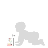 Vďaka kompaktným rozmerom (výška cca 13 cm, priemer základne 9 cm) sa ľahko zmestí do batôžka a je perfektný na cesty aj do kútika pre najmenších. Bezpečné prevedenie a hladké hrany zaisťujú pohodlné a bezpečné hranie pre deti od 12 mesiacov.