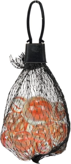 Sieťkové balenie je nielen praktické pre skladovanie a prenos, ale tiež umožňuje vidieť obsah a chráni guľôčky.