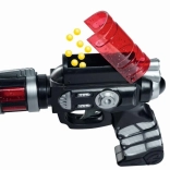 Futuristický vzhľad v dvoch farebných variantoch – červenej a zelenej – poteší každého malého fanúšika sci‑fi. Pištoľ má kompaktnú dĺžku 18 cm, skvele padne do ruky a je ideálna na rýchle prestrelky aj tréning presnosti.