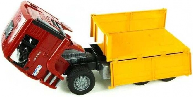 Nákladné auto MAN je vybavené sklopnou korbou, ktorá umožňuje ľahkú nakládku a vykládku materiálu.