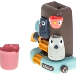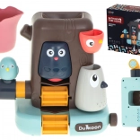 Premeňte každodenné kúpanie na dobrodružstvo! Tento farebný stromový domček s vtáčikmi a funkčným kohútikom priľne na vaňu pomocou prísaviek a poskytne množstvo vodných aktivít. Deti nalievajú vodu z pohárika a sledujú, ako sa roztočí mlynček, tečie voda z kohútika a z vtáčika strieka jemná sprška ako sprcha. Skvelé na rozvoj jemnej motoriky, logického myslenia aj kreativity.