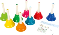 Objavte čaro hudby s touto sadou osmi zvončekov, ktoré sú nielen krásne farebné, ale tiež funkčné zabezpečujú každý tón od C po H. Deti sa môžu naučiť rôzne melódie, ako je 'Strýko Donald farmu mal', 'Rolničky' a 'Trblietaj sa, hviezdička'. Táto sada podporuje hudobnú výchovu, rozvoj rytmiky a jemné motorické schopnosti. Ideálna do škôlky a na prvé stupne základných škôl.
