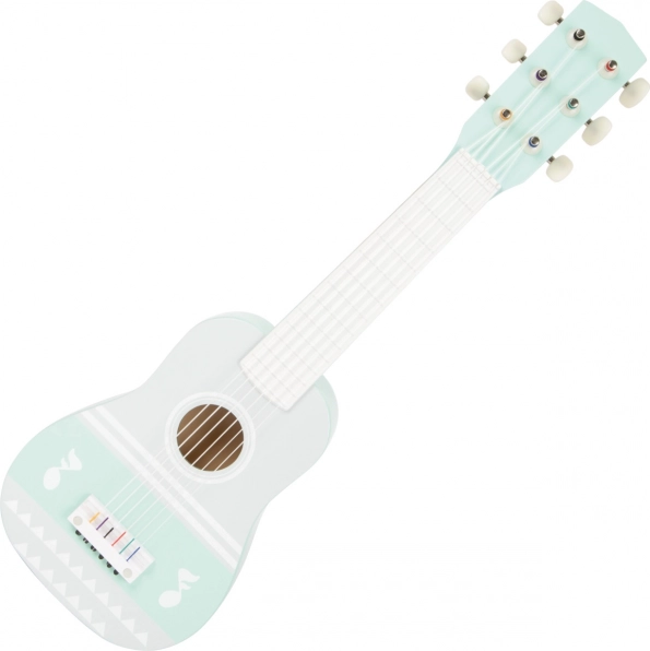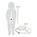 Kompaktná gitara so šiestimi strunami padne do malých rúk, bubienok s popruhom a dvojicou paličiek (Ø cca 18 cm, výška cca 8 cm) pozýva k rytmickej hre doma aj na cestách.
