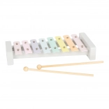 Farebný xylofón s kovovými lamelami a dvoma paličkami pomáha deťom spoznávať tóny a melódie. Podporuje jemnú motoriku aj sluchové vnímanie.