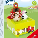 Táto čarovná hracia skrinka na tému farmy vytvára príjemnú atmosféru pre deti pred spaním aj pri hraní. Po natiahnutí sa figúrky kravy a psíka začnú otáčať na známu melódiu „Strýček Donald farmu mal“, ktorá deti upokojí a poteší.