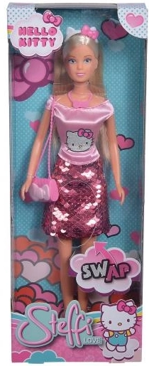 Bábika Steffi Hello Kitty ponúka módne oblečenie s flitrovou sukňou a swap efektom, ktoré zaujme každého malého módneho nadšenca. Súčasťou sú tiež doplnky, ako je náhrdelník, čelenka a malá kabelka, ktoré zdôrazňujú jej hravý charakter.