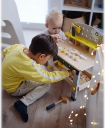 Vďaka realistickému dizajnu ponk poskytuje deťom možnosť zažiť pocit zo skutočnej dielne a rozvíjať ich tvorivosť a motorické zručnosti.