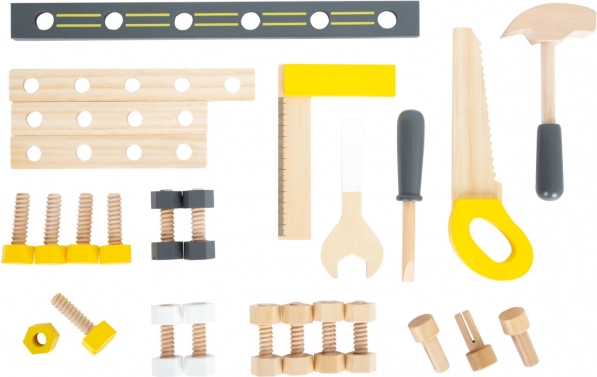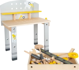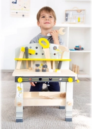 Tento detský ponk Miniwob prináša do detskej dielne skutočne veľa zábavy. Vďaka svojej kompaktnej veľkosti a klasickému dizajnu sa dá ľahko uložiť aj do menších priestorov. Ponk je vybavený 5 kusmi dreveného náradia a širokou škálou doplnkov, ktoré uľahčujú fantazijnú hru a praktickú výuku zručností.