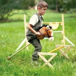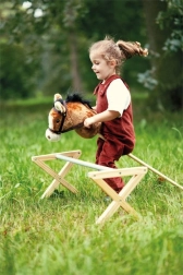 Plyšový koník na tyči Nico je ideálny spoločník pre malých jazdcov. Jemná plyšová hlava s uzdou a oťažami láka k fantazijným hrám, zatiaľ čo drevená tyč so stabilnými madlami a kolieskami zaisťuje pohodlný a plynulý pohyb po podlahe aj vonku. Deti si užijú autentickejší zážitok vďaka zvukovému efektu – po stlačení uší sa koník radostne rozerdže.
