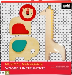 Výrobok je zo 100 % FSC dreva, povrch je lakovaný a potlače sú z farieb na vodnej báze – bezpečná voľba pre detské ruky aj planétu. Obaly sú recyklovateľné. Ideálny ako štýlový a udržateľný darček pre malých muzikantov od 18 mesiacov.