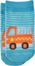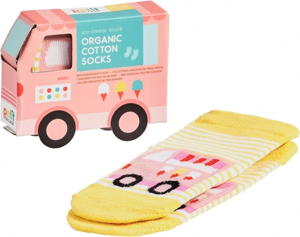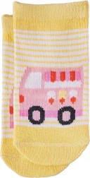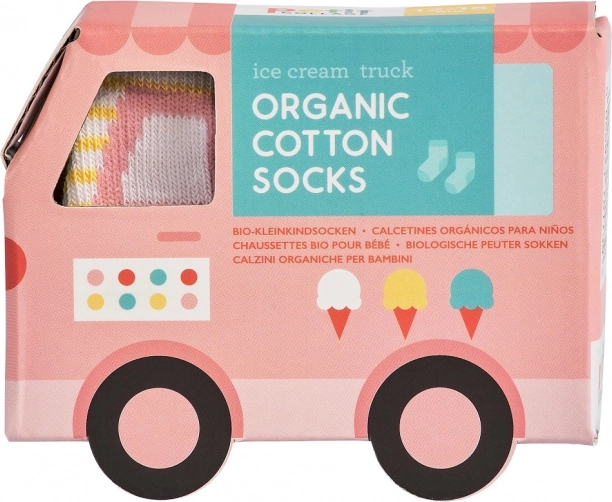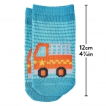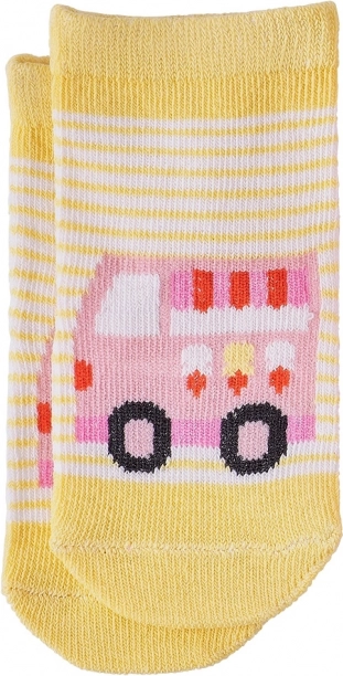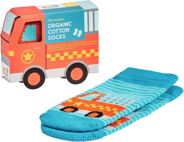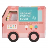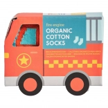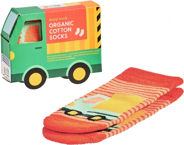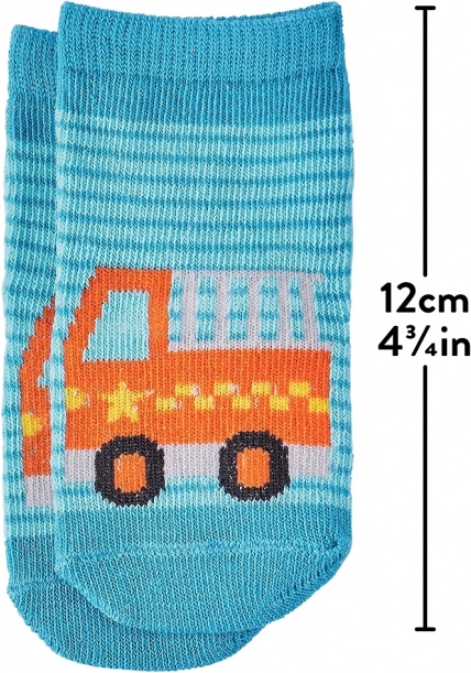 Roztomilé detské ponožky z organickej bavlny pre batoľatá dodajú pohodlie aj hravý štýl. Na výber sú veselé motívy vozidiel (autíčko, hasičské auto, zmrzlinárske či nákladné vozidlo) a mäkučký rebrovaný lem zaistí, že ponožky dobre držia na nohe. Skvelé ako ekologická voľba pre citlivú detskú pokožku.