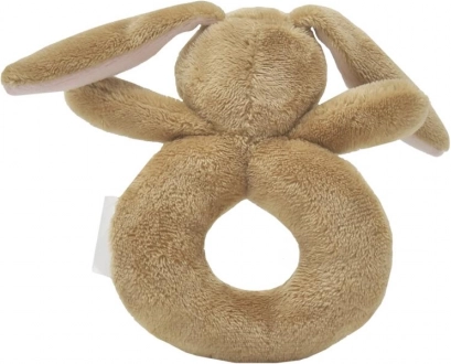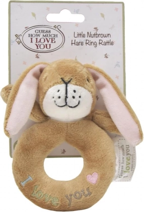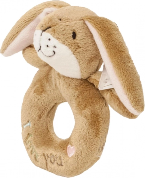Táto rozkošná hrkálka v tvare králika inšpirovaná knihou Hádej, ako veľmi ťa mám rád prináša radosť a zábavu pre vaše najmenšie. Vyrobená z mäkkej plyše, s vyšivanou tvárou a nápisom Milujem ťa, je perfektným darčekom pre stimuláciu detských zmyslov.